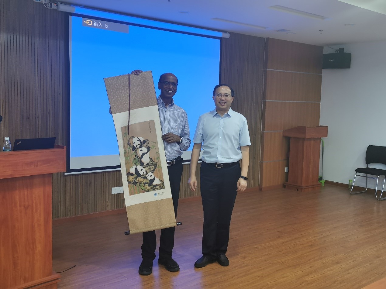 During the questioning phase, there was a warm exchange and discussion with Professor Kaushik Rajashekara. Finally, Prof. Chen Weirong presented the souvenir to Prof. Kaushik Rajashekara.