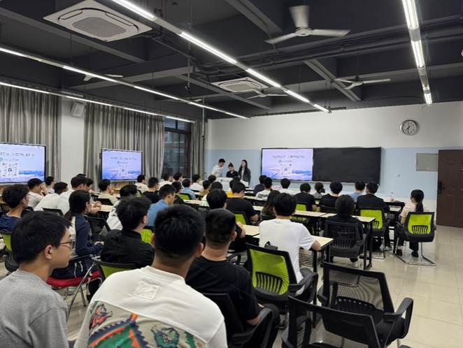 随后,电气学院2011级校友田子思带来了目前各行业赛道的分析,结合自身多年的工作经历,分析电气工程专业未来的就业方向,为学子们提供了宝贵的行业洞察;也针对当前职业市场的竞争态势,为学子们提供了应对策略和建议,鼓励学子们要不断提升自己的专业技能和综合素质,以应对未来职业发展的挑战,同时通过分享阳光电源的主播福利和成功案例,鼓励学子们要敢于追求自己的梦想,将个人目标与行业需求相结合,实现个人价值的最大化。