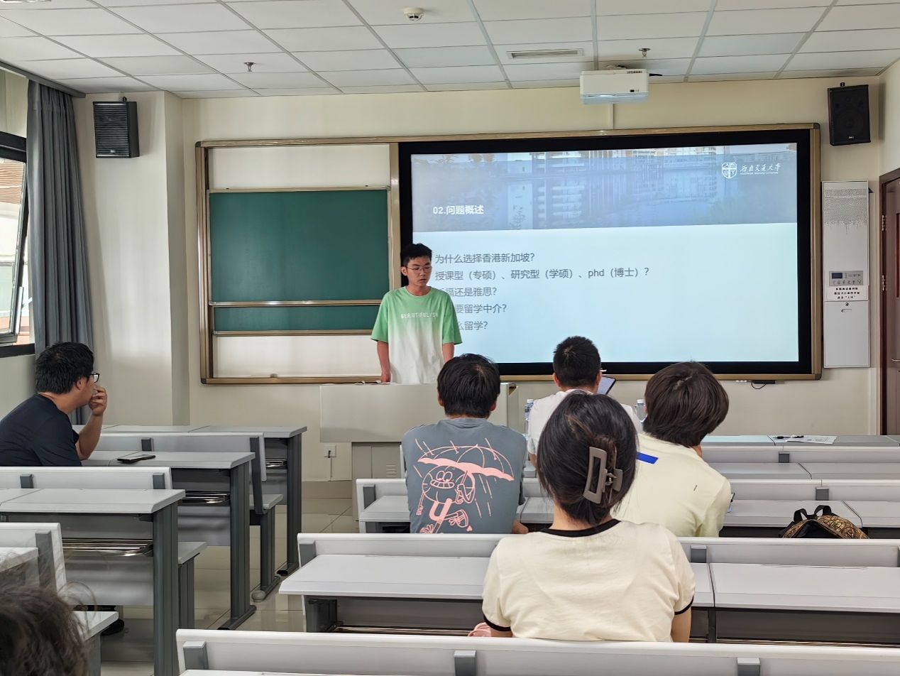 紧接着,他围绕以下问题展开详细介绍:为什么留学?为什么选择香港新加坡?选择授课型(专硕)、研究型(学硕)、phd(博士)?需要托福还是雅思?是否要留学中介?他详细介绍了自己留学初衷、香港新加坡留学优势、授课型研究型phd之间的区别以及留学中介选择注意事项,不仅为同学们提供了实用的建议,还激发了大家对于留学的热情。