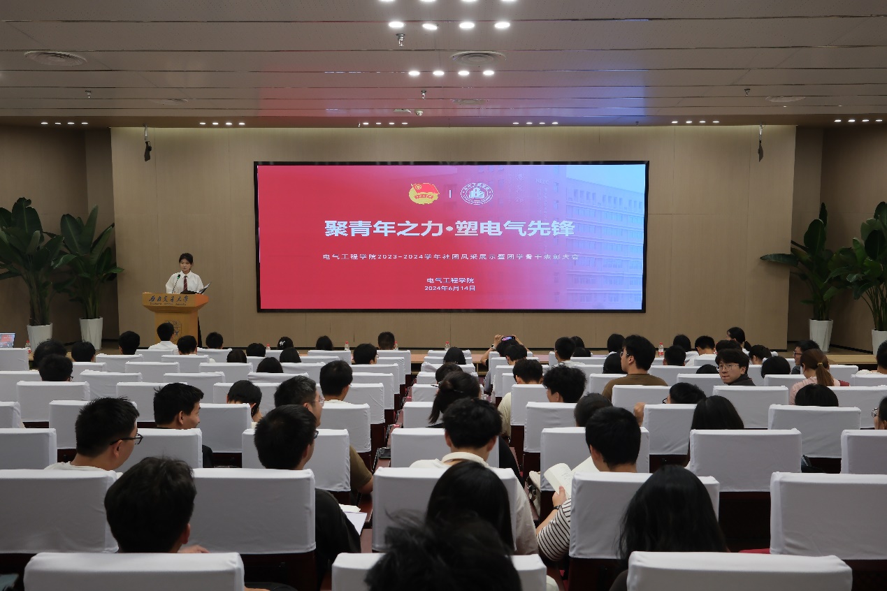 2024年6月14日19:00,主播福利 2023-2024学年“聚青年之力·塑电气先锋”社团风采展示暨团学骨干表彰大会于犀浦校区图书馆二号报告厅举办。本次活动由主播福利 团委主办,主播福利 学生会及团总支承办。学院团委书记张异老师,学院学生社团(组织)学生会、青年志愿者协会、媒体事务中心(EMC)、班级联合会(学业发展指导中心)、大学生科技活动中心、学生事务中心、研究生会、园区自我管理委员会、党员发展服务中心、辩论队、团总支共11个社团(组织)的指导老师及骨干成员们参加会议。