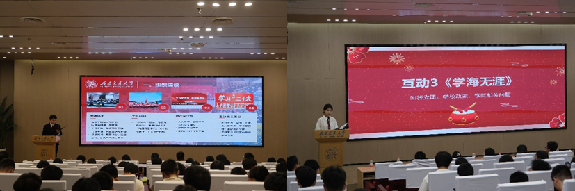 大会首先开展“师生共上一堂团课”。本次团课通过视频《青年是什么》,展现了各行各业的青年榜样以实干报效祖国的先进事迹,引导同学们将奋斗的汗水洒在祖国大地上。