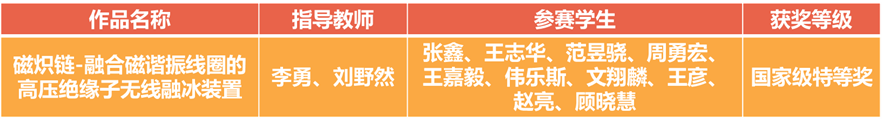 学院参赛团队结合学科优势,创新研发“磁炽链”无线融冰装置,为电网绝缘子防冰难题提供了创新方案。所设计装置基于电磁耦合原理,通过在绝缘子内部嵌入多级磁耦合线圈,并将各级磁耦合线圈产生的磁场能量实时转换为热能,从而实现融冰效果。相较于传统技术,所设计装置能够实现绝缘子全天候自动除冰,有效避免人工干预风险,具有除冰效果可靠、实时性高等特点。